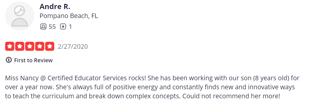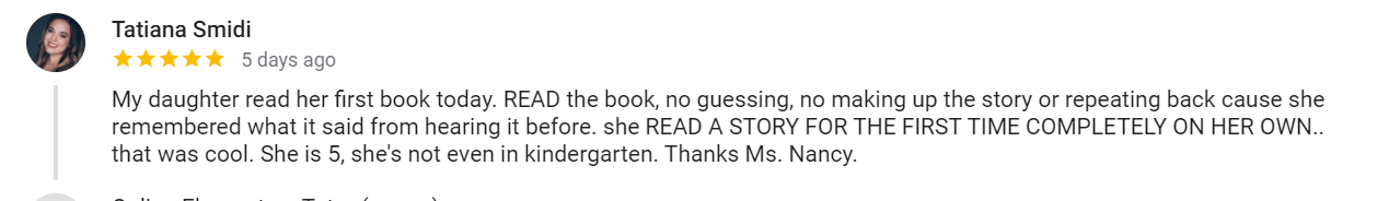 “Nancy is a miracle worker. She didn’t just teach my child. Nancy made her feel seen, heard, and valued—and that made all the difference.”
